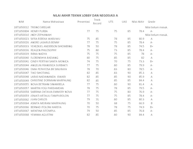 Siahaan, Chontina (2021) Mata Kuliah : Teknik Loby dan Negosiasi Kelas A. UKI. (Unpublished)