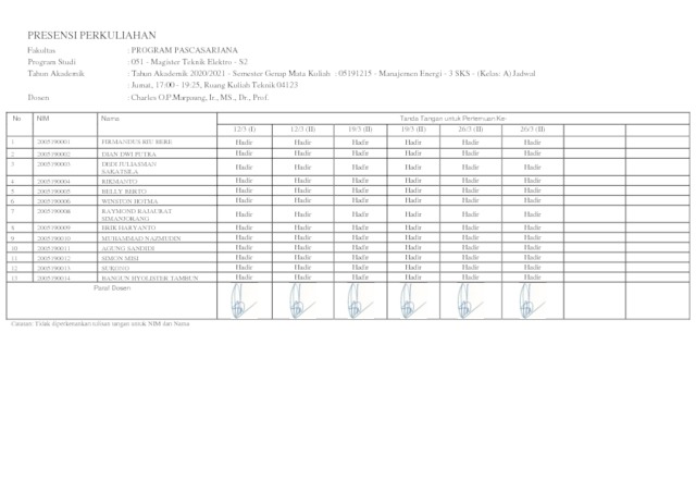 Marpaung, Charles OP (2020) Mata Kuliah: Manajemen Energi. UKI, Jakarta. (Unpublished)