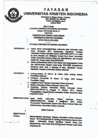Yayasan, UKI (2015) SK Pembentukan Dewan Guru Besar UKI Masa Kerja 2015-2020. Yayasan Universitas Kristen Indonesia, Jakarta.