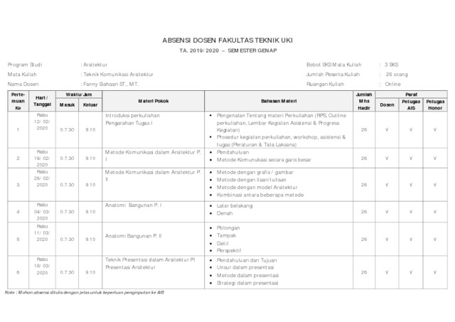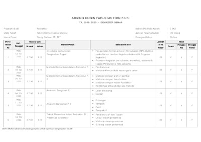 Siahaan, Fanny (2020) Mata Kuliah : Teknik Komunikasi Arsitektur. UKI. (Unpublished)