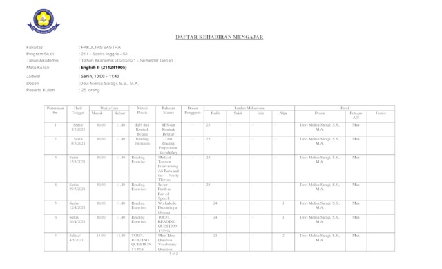 Saragi, Devi Melisa (2021) Mata Kuliah : English II A. UKI. (Unpublished)