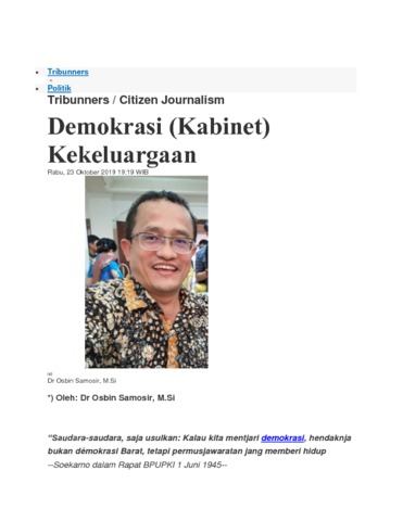 Samosir, Osbin (2019) Demokrasi (Kabinet) Kekeluargaan. Tribunners.