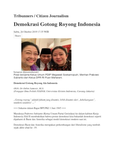 Samosir, Osbin (2019) Demokrasi Gotong Royong Indonesia. Tribunners.