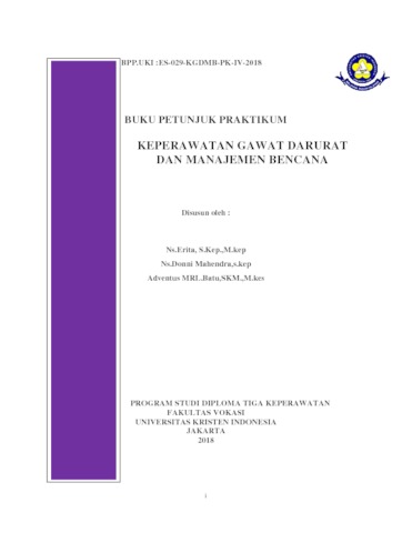 Buku Petunjuk Praktikum Keperawatan Gawat Darurat dan Manajemen Bencana Program Studi Diploma Tiga Keperawatan Fakultas Vokasi UKI.