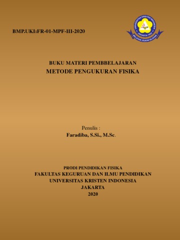 Faradiba, Faradiba (2020) BUKU MATERI PEMBELAJARAN METODE PENGUKURAN FISIKA. PROGRAM STUDI PENDIDIKAN FISIKA FAKULTAS KEGURUAN DAN ILMU PENDIDIKAN UNIVERSITAS KRISTEN INDONESIA, Jakarta.
