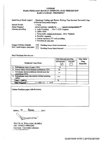 Simanjuntak, Gilbert W S (2014) Membrane peeling and shorter waiting time increase succesfull rate of retinal detachment surgery. In: The 1st AOS Congress. AOS, Thailand.