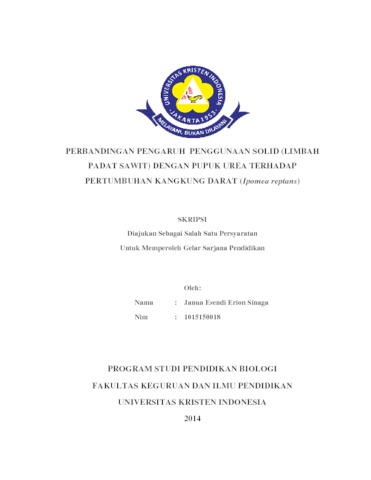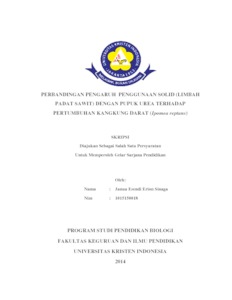 Sinaga, Janua Esendi Erion (2014) Perbandingan Pengaruh Penggunaan Solid (Limbah Padat Sawit) Dengan Pupuk Urea Terhadap Pertumbuhan Kangkung Darat (Ipomea Reptans). S1 thesis, Universitas Kristen Indonesia.