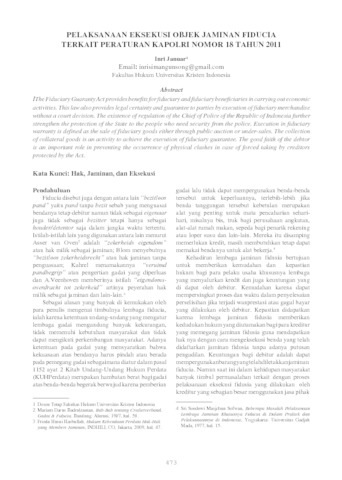 Januar, Inri (2017) PELAKSANAAN EKSEKUSI OBJEK JAMINAN FIDUCIA TERKAIT PERATURAN KAPOLRI NOMOR 18 TAHUN 2011. to-ra, 3 (1). pp. 473-478. ISSN 2620 9837