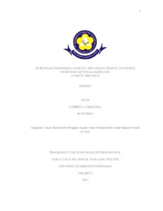 Ekklesia, Gabriela (2013) Hubungan Indonesia-Taiwan: Diplomasi People To People Di Bidang Ketenagakerjaan (Tahun 2004-2012). S1 thesis, Universitas Kristen Indonesia.