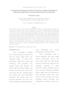 This research is aims to know about the improvement of chemistry learning outcomes of grade X on electrolyte and non electrolyte solutions academic year 2018/2019 through learning experimental method. This research is a class action research couduct in three cycles. The subject of this research is all students of grade X Darussalam Tangerang Selatan of 26 students. Data collection techniques in this research are test score of critical thinking skills. The results of the research that the application of learning experimental method can improve students’ critical thinking skills on topics electrolyte and non electrolyte. Based on the results of the first cycle, the second and the third cycle always increase. The average critical thinking ability in fisrt cycle on is 34,61%. In the second cycle the increase in students’ critical thinking skills increased to 73,07% and completeness in the third cycle. The results of this class action research are the learning experimental method can improve students’ critical thinking skills of students in grade X Darussalam Tangerang Selatan on the electrolyle and non electrolyte solutions.