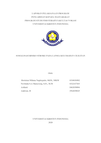 Napitupulu, Rosintan Milana and Manurung, Novlinda Susy Anrianawati and Ardiani, and H, Andreas. (2020) Sosialisasi Risiko Stroke Pada Lansia Kelurahan Cililitan. LAPORAN PELAKSANAAN PROGRAM PENGABDIAN KEPADA MASYARAKAT PROGRAM STUDI FISIOTERAPI FAKULTAS VOKASI UNIVERSITAS KRISTEN INDONESIA.