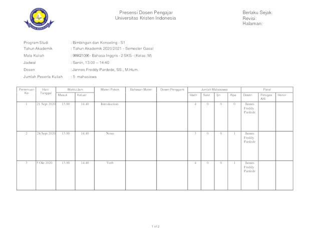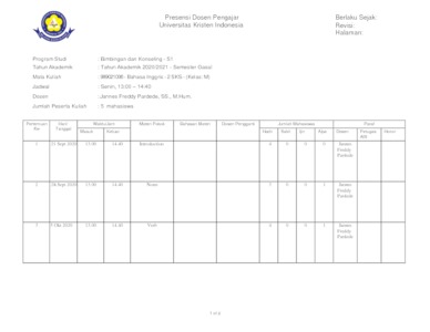 Pardede, Jannes Freddy (2021) Mata Kuliah : Bahasa Inggris Kelas M. UKI, Jakarta. (Unpublished)