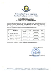 Sianipar, Imelda Masni Juniaty (2021) Mata Kuliah : Hubungan Internasional di Amerika Latin Kelas A. UKI, Jakarta. (Unpublished)
