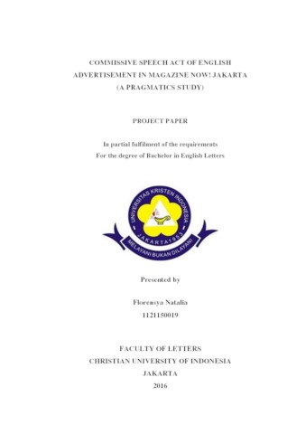 Natalia, Florensya (2016) Commissive Speech Act Of English Advertisement In Magazine Now! Jakarta (A Pragmatics Study). S1 thesis, Universitas Kristen Indonesia.
