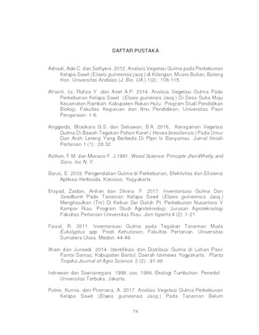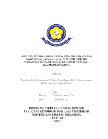 Yuni, Valentina Asri (2018) Analisis Sebaran Gulma Pada Perkebunan Kelapa Sawit (Elaeis GUINENSIS Jacq.) Di Dusun Banying, Kecamatan Sengah Temila, Kabupaten Landak, Kalimantan Barat. S1 thesis, Universitas Kristen Indonesia.