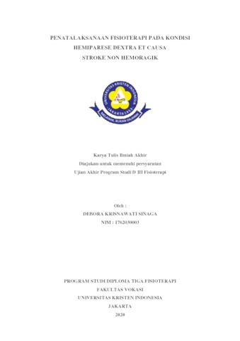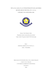 Sinaga, Debora Krisnawati (2020) Penatalaksanaan Fisioterapi Pada Kondisi Hemiparese Dextra Et Causa Stroke Non Hemoragik. D3 thesis, Universitas Kristen Indonesia.
