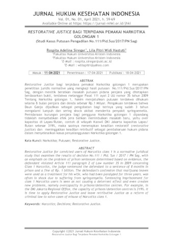 Siregar, Rospita Adelina and Hastuti, Lila Pitri Widi (2021) RESTORATIVE JUSTICE BAGI TERPIDANA PEMAKAI NARKOTIKA GOLONGAN 1. JURNAL HUKUM KESEHATAN INDONESIA, 1 (1). pp. 59-69.