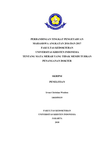 Wenben, Irvan Christian (2018) Perbandingan Tingkat Pengetahuan Mahasiswa Angkatan 2016 Dan 2017 Fakultas Kedokteran Universitas Kristen Indonesia Tentang Mata Merah Yang Tidak Membutuhkan Penanganan Dokter. S1 thesis, Universitas Kristen Indonesia.