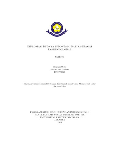 Umboh, Eirene Jusi (2019) Diplomasi Budaya Indonesia: Batik Sebagai Fashion Global. S1 thesis, Universitas Kristen Indonesia.
