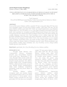 Aritonang, Yanti Anggraini (2021) UPAYA PENURUNAN GULA DARAH DENGAN MENGGUNAKAN SLOW DEEP BREATHING EXERCISE PADA PASIEN DIABETES MELLITUS TIPE II DI RSU UKI JAKARTA TIMUR. Jurnal Keperawatan Dirgahayu, 3 (1). ISSN 2685 3086