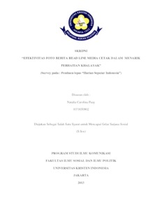Paay, Natalia Carolina (2013) “Efektivitas Foto Berita Head Line Media Cetak Dalam Menarik Perhatian Khalayak” (Survey PADA : Pembaca LEPAS “Harian Seputar Indonesia”). S1 thesis, Universitas Kristen Indonesia.