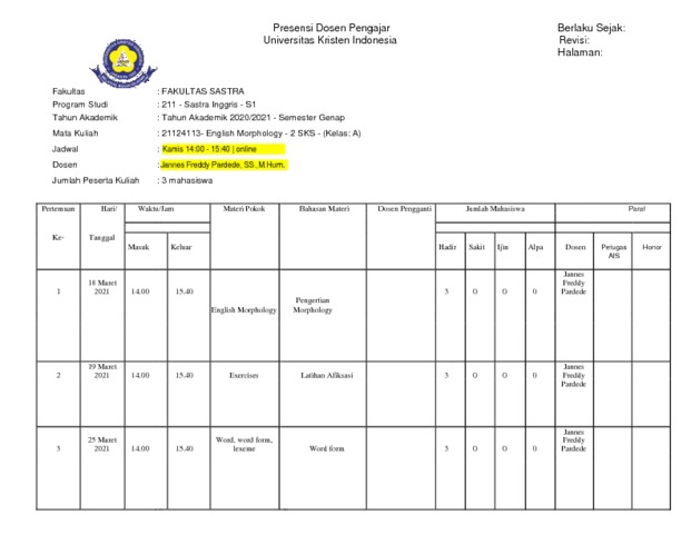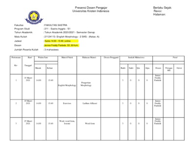 Pardede, Jannes Freddy (2021) Mata Kuliah : English Morphology. Universitas Kristen Indonesia. (Unpublished)