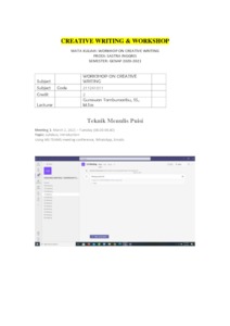 Tambunsaribu, Gunawan (2021) Mata Kuliah : Creative Writing. Universitas Kristen Indonesia. (Unpublished)