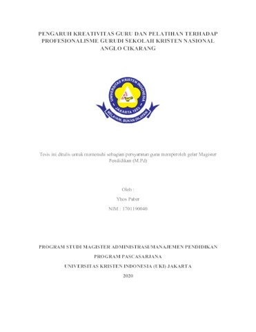 Paber, Yhos (2020) Pengaruh Kreativitas Guru Dan Pelatihan Terhadap Profesionalisme Guru di Sekolah Kristen Nasional Anglo Cikarang. S2 thesis, Universitas Kristen Indonesia.