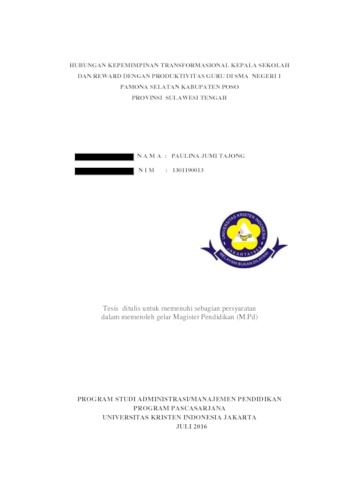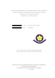 TAJONG, PAULINA JUMI (2016) Hubungan Kepemimpinan Transformasional Kepala Sekolah dan Reward Dengan Produktivitas Guru di SMA Negeri 1 Pamona Selatan Kabupaten Poso Provinsi Sulawesi Tengah. S2 thesis, Universitas Kristen Indonesia.