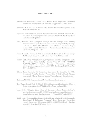 Ulie, Thresia Hotma (2018) Motivasi Kerja, Budaya Sekolah, Dan Kinerja Guru Di TK, SD, SMP, Dan SMA Nasional Plus Badan Pendidikan Kristen (BPK) Penabur Bogor. S2 thesis, Universitas Kristen Indonesia.