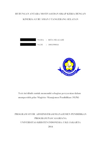 SILALAHI, RITA (2014) Hubungan Antara Motivasi dan Sikap Kerja Dengan Kinerja Guru SMAN 5 Tangerang Selatan. S2 thesis, Universitas Kristen Indonesia.