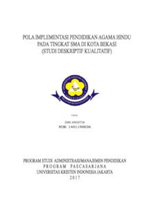 Arisetia, Dwi (2017) Pola Implementasi Pendidikan Agama Hindu pada Tingkat SMA di Kota Bekasi (Studi Deskriptif Kualitatif). S2 thesis, Universitas Kristen Indonesia.