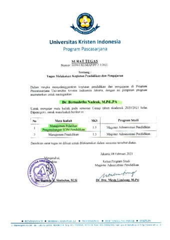 Nadeak, Bernadetha (2021) Mata Kuliah : Manajemen Pelatihan Pengembangan SDM Pendidikan. UKI, Jakarta. (Unpublished)