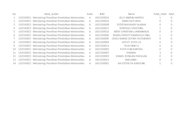 Sinaga, Dameria (2021) Mata Kuliah: Metodologi Penelitian Pendidikan Matematika. Fakultas Keguruan Dan Ilmu Pendidikan Universitas Kristen Indonesia, Jakarta. (Unpublished)