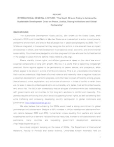 INTERNATIONAL GENERAL LECTURE: “The South Africa’s Policy to Achieve the Sustainable Development Goals on Peace, Justice, Strong Institutions and Global Partnership”