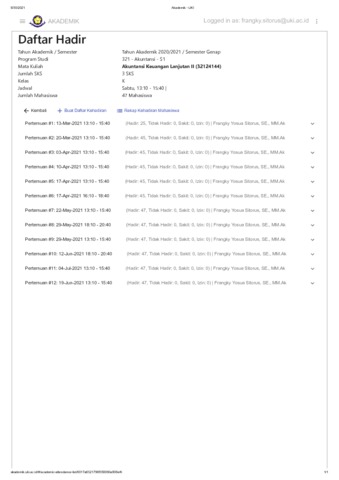 Sitorus, Frangky Yosua (2021) Mata Kuliah: Akuntansi Keuangan Lanjutan II. Fakultas Ekonomi dan Bisnis Universitas Kristen Indonesia, Jakarta. (Unpublished)