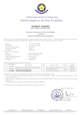 Murniarti, Erni (2021) Mata Kuliah : Etika dan Profesi Keguruan Kelas A. UKI. (Unpublished)
