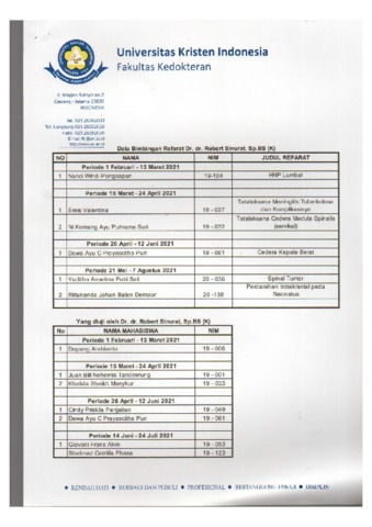 Sinurat, Robert (2021) Bimbingan Referat dan Menguji Mahasiswa Kepaniteraan. UKI, Jakarta. (Unpublished)