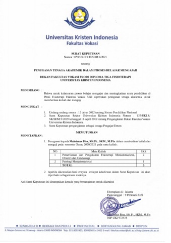 Bisa, Maksimus (2021) Mata Kuliah : Pemeriksaan dan Pengukuran Fisioterapi Muskuloskeletal, Obstetri dan Ginekologi. UKI, Jakarta. (Unpublished)