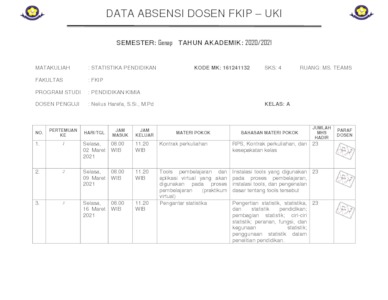 Harefa, Nelius (2021) Mata Kuliah : Statistika Pendidikan. UKI. (Unpublished)