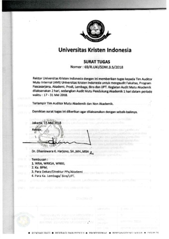 UKI, UKI (2018) Surat Tugas Tim Auditor Mutu Internal. Universitas Kristen Indonesia. (Unpublished)