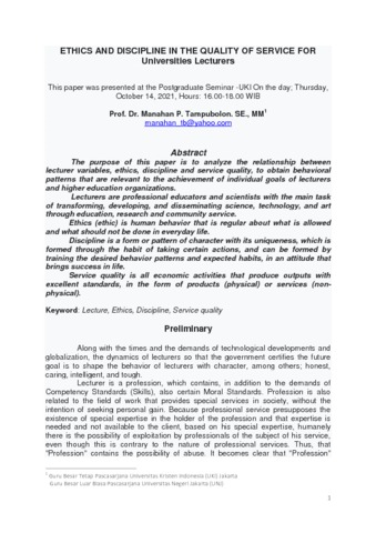 Tampubolon, Manahan P (2021) ETHICS AND DISCIPLINE IN THE QUALITY OF SERVICE FOR Universities Lecturers. [Teaching Resource] (Unpublished)