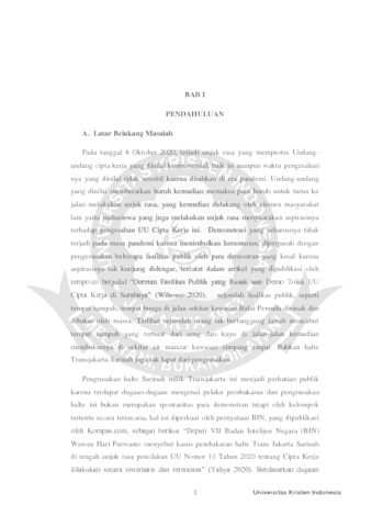 Unjuk rasa memprotes UU Cipta Kerja berdampak pada pengrusakan sejumlah fasilitas publik salah satunya halte Sarinah. Narasi TV melakukan sebuah gebrakan baru dalam produksi liputan investigasi yakni menggunakan metode yang memanfaatkan kecerdasan buatan yang mampu mengakses serta merangkum informasi dari sumber terbuka (Open source) yang memudahkan proses investigasi yang dilakukan, dibanding melakukan metode investigasi secara konvensional untuk mengungkap kasus ini. Namun terlihat kecenderungan menyudutkan kelompok yang dalam video tersebut disebut sebagai “pelaku pembakaran” menempatkan pihak tersebut dalam posisi yang tak setara, yang dalam video tersebut bukti hanya berupa sekumpulan video yang terdapat dalam “Open source” Narasi TV secara tidak langsung melakukan vonnis dan pelabelan sepihak pada kelompok tersebut. Oleh karena itu penelitian ini berusaha untuk mengetahui Bagaimana Narasi TV membingkai video “62 menit Operasi Pembakaran Halte Sarinah| Buka Mata” melalui metode AI Open source based data gathering? Dalam membuktikan asumsi tersebut penelitian ini melakukan analisis yang berpedoman pada model analisis framing yang dikemukakan oleh Iyengar (1991), guna membantu peneliti mengategorikan temuan-temuan penelitian yang berupa audio visual, yang pada penelitian ini Iyengar melihat pembingkaian menjadi dua tipe yakni Episodic Framing dan Thematic framing bisa diidentifikasi dengan alat analisis thematic image dan abstract image. Dalam penelitian ini peneliti menemukan pembingkaian yang dilakukan oleh Narasi TV ini dilakukan dalam dua jenis pembingkaian yakni secara episodic dan thematic, namun bingkai episodiknya jauh lebih dominan digunakan isi videonya yang membingkai tetapi dengan menyudutkan sekelompok orang dengan menggunakan visual dengan pandangan penonton yang dipersempit, gambar yang dikontraskan sehingga penonton seolah dipaksa untuk melihat hal yang sama dan memiliki persepsi yang sama dengan pembuat video. Serta Narasi TV juga berusaha membingkai metode OSINT ini sebagai metode yang canggih dan mutakhir sehingga mereka dapat “bersembunyi” dibalik teknologi yang masih cukup asing diterapkan pada media-media di Indonesia untuk mencari pembenaran atas pembingkaian yang dilakukan. Kata Kunci: Framing, OSINT, Jurnalisme Investigasi, Arificial Intelegence, Open source/ The demonstration against the job creation law resulted in the destruction of facility numbers, one of which was the Sarinah bus stop. Narasi TV made a new breakthrough in the production of investigative investigations by using methods that utilize artificial intelligence which is able to access and summarize information from open sources (Open source) which facilitates the investigation process carried out, and perform conventional investigative methods to uncover this case. However, there is a tendency to corner the group who in the video is referred to as the "arsonist" placing the party in an unequal position, which in the video is only a video contained in "Open source" Narasi TV directly carries out a verdict and unilateral labeling of the group. Therefore, this study seeks to find out how the Narasi TV frames the video “62 Menit Operasi Pembakaran Halte Sarinah| Buka Mata through the Open source AI-based data collection method? In proving the framing assumption, this study conducted an analysis guided by the framing analysis model proposed by Iyengar (1991), to help researchers categorize research findings in the form of audio-visual, which in this study Iyengar saw framing into two types, namely Episodic Framing and Thematic framing can be searched with thematic imagery and abstract imagery analysis tools. In this study, the researcher found that the framing carried out by Narasi TV was carried out in two types of framing, namely episodic and thematic, but the episodic frame was much more dominant in the form of frames but by cornering a group of people by using visuals with a narrowed view of the audience, contrasting images. so that the viewer seems to be forced to see the same thing and have the same perception as the video maker. And Narasi TV also tries to frame OSINT as a sophisticated and up-to-date method so that they can "hide" behind the technology that is still applied to the media in Indonesia to find justification for the framing done. Keywords: Framing, OSINT, Investigative Journalism, Artificial Intelligence, Open source
