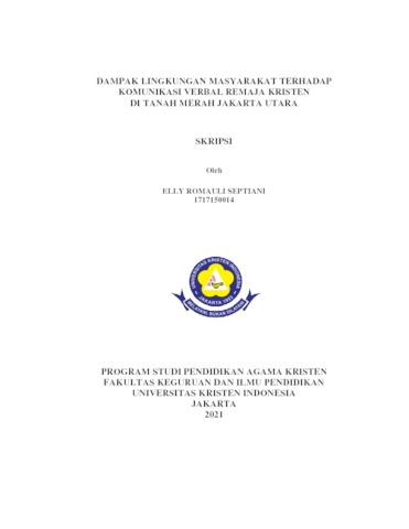 Septiani, Elly Romauli (2021) Dampak Lingkungan Masyarakat terhadap Komunikasi Verbal Remaja Kristen di Tanah Merah Jakarta Utara. S1 thesis, Universitas Kristen Indonesia.