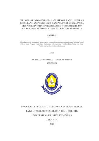Ngambut, Aurelia Vanessica Tierra (2021) Diplomasi Indonesia dalam Mengurangi Jumlah Kedatangan Pengungsi dan Pencari Suaka pada Era Pemerintahan Presiden Joko Widodo I (2014-2019) Studi Kasus: Kebijakan Turn Back Boats Australia. S1 thesis, Universitas Kristen Indonesia.