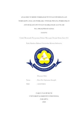 Saragih, Jhon Feri Sariaman (2020) Analisis Yuridis Terhadap Putusan Pemidanaan Terdakwa Dalam Perkara Tindak Pidana Perbankan (Studi Kasus Putusan Mahkamah Agung RI No. 1982 K/PID.SUS/2014). S1 thesis, Universitas Kristen Indonesia.