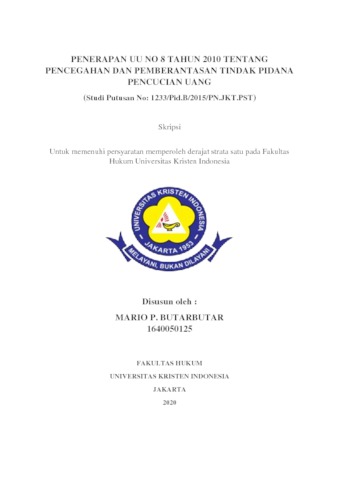 Butarbutar, Mario P. (2020) Penerapan Uu No 8 Tahun 2010 Tentang Pencegahan Dan Pemberantasan Tindak Pidana Pencucian Uang (Studi Putusan No: 1233/Pid.B/2015/PN.JKT.PST). S1 thesis, Universitas Kristen Indonesia.