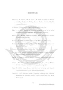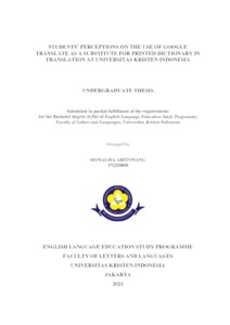Aritonang, Monalisa (2021) Students’ Perceptions on the Use of Google Translate as a Substitute for Printed Dictionary in Translation at Universitas Kristen Indonesia. S1 thesis, Universitas Kristen Indonesia.