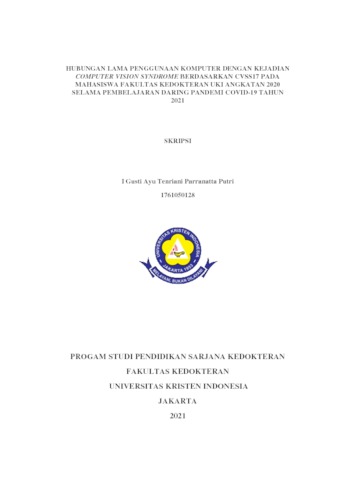 Hubungan Lama Penggunaan Komputer dengan Kejadian Computer Vision Syndrome Berdasarkan CVSS17 Pada Mahasiswa Fakultas Kedokteran UKI Angkatan 2020 Selama Pembelajaran Daring Pandemi COVID-19 Tahun 2021