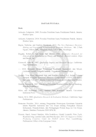 Isu lingkungan menjadi isu yang menarik dan sering dibicarakan. Masyarakat mulai peduli terhadap beberapa kerusakan lingkungan dan ekosistem yang terjadi. Tingginya permintaan akan hasil hutan, khususnya kayu, di pasar lokal, nasional, dan internasional berkontribusi pada kegiatan pembalakan liar. Indonesia dan Uni Eropa menjalin kerja sama intensif melalui perjanjian FLEGT-VPA untuk menangani masalah pembalakan liar. Pemerintah Indonesia telah mendahului FLEGT UE dalam menanggapi masalah pembalakan liar dengan menerapkan suatu sistem pelacakan dan pemantauan secara efektif yang disebut dengan Sistem Verifikasi Legalitas Kayu. SVLK menjadi jaminan kelestarian pengelolaan hutan. Skema SVLK sendiri merupakan tanggapan pemerintah sebagai bentuk good forest governance terkait dengan pengelolaan hutan lestari, dengan melibatkan para pemangku kepentingan dalam pelaksanaannya. Maka dari itu penelitian ini akan memfokuskan implementasi realisasi sistem SVLK yang disusun oleh para multi-stakeholder dan berdampak pada tata kelola hutan lestari di Indonesia serta berpengaruh pada fungsi pasar kayu Indonesia ke UE. Penelitian ini menggunakan konsep diplomasi ekonomi, melalui keterlibatan menteri, aktor non-negara, transparansi, dan Institusi Internasional dalam melihat pengaruh SVLK pada ekspor kayu Indonesia ke UE. Hasil dari penelitian ini menunjukkan bahwa adanya suatu regulasi yang disusun pemerintah dengan para multi-stakeholder telah membawa dampak terhadap good forest governance di Indonesia. Implementasi SVLK menunjukkan bahwa selain dari masalah global yang dihadapi Indonesia terkait pembalakan liar, membuat UE lebih menyesuaikan bahkan memperbolehkan kayu yang akan masuk pasar UE tidak perlu melewati due dillgence. Terlihat dari motif pemerintah dengan adanya SVLK dijadikan sebagai alat diplomasi ekonomi Indonesia untuk bisa memasuki akses pasar UE melalui kerangka kerja FLEGT-VPA. Secara aspek ekonomi melalui sistem SVLK terdapat peningkatan pada fungsi pasar ekspor. Dalam hal perdagangan SVLK telah mengubah fungsi pasar kayu Indonesia ke UE. Metode yang digunakan dalam penelitian ini metode kualitatif deskriptif analisis dengan pendekatan wawancara dan dokumentasi. Kata kunci: SVLK, FELGT-VPA, Ekspor Kayu, Good Forest Governance, Diplomasi Ekonomi/ Environmental issue has been an interesting topic and has been talked about a lot. People have been aware of the environment and ecosystem damage. The high demand of forest products, especially woods in local, national and international markets contributed to illegal logging. Indonesia and European Union built an intensive cooperation through FLEGT-VPA agreement to handle the problems of illegal logging. The Indonesian government has preceded the FLEGT UE by implementing an effective tracking and monitoring system that is called Sistem Verifikasi Legalitas Kayu (SVLK). SVLK assured the sustainability of forest management. The SVLK scheme itself was a government response as a form of good forest governance in relation to sustainable forest management, and it involved authorities in its implementation. Therefore, this study focused on the realisation of SVLK implementation that was arranged by multi-stakeholders and affected the Indonesian market function to the EU. This study implements the economic diplomacy, through the involvement of minister, non-state actors, transparency and international institutions in looking at the influence of SVLK on Indonesian wood exports to the EU. The results of this study indicate that the existence of a regulation prepared by the government with multi-stakeholders has an impact on good forest governance in Indonesia. The implementation of the SVLK shows that apart from the global problems faced by Indonesia related to logging, it makes the EU more adaptable and even allows wood that will enter the EU market not to have to go through difficulties. It can be seen from the government's motive that the SVLK is used as a tool for Indonesia's economic diplomacy to gain access to the EU market through the FLEGT-VPA framework. From the economic aspect, through the SVLK system, there is an increase in the function of the export market. In terms of trade, SVLK has changed the function of the Indonesian timber market to the EU. Methods used in this study is qualitative descriptive analysis method with interview and documentation approach. Keywords: SVLK, FLEGT-VPA, Wood Export, Good Forest Governance, Economic Diplomacy.